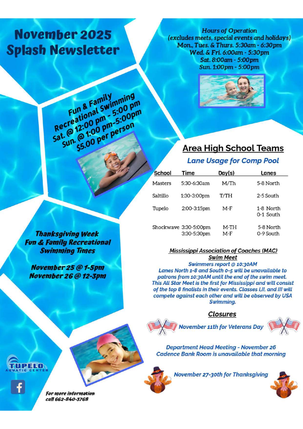 BECOME A MEMBER OF THE TUPELO AQUATIC CENTER, AND GET A SPLASH PASS FOR YOU AND YOUR FAMILY TO ENJOY. LEARN MORE